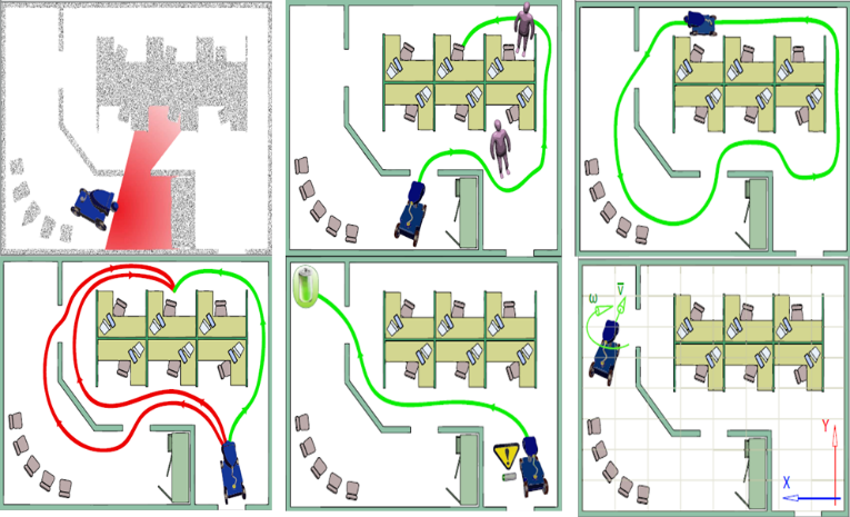 Модели мобильных роботов, оснащенные лазерными сканирующими дальномерами и специализированными навигационными вычислительными комплексами, могут осуществлять автономное перемещение по заданным площадям, обнаруживать препятствия, корректировать карту окружающего пространства, осуществлять планирование маршрута и выполнение маневров.