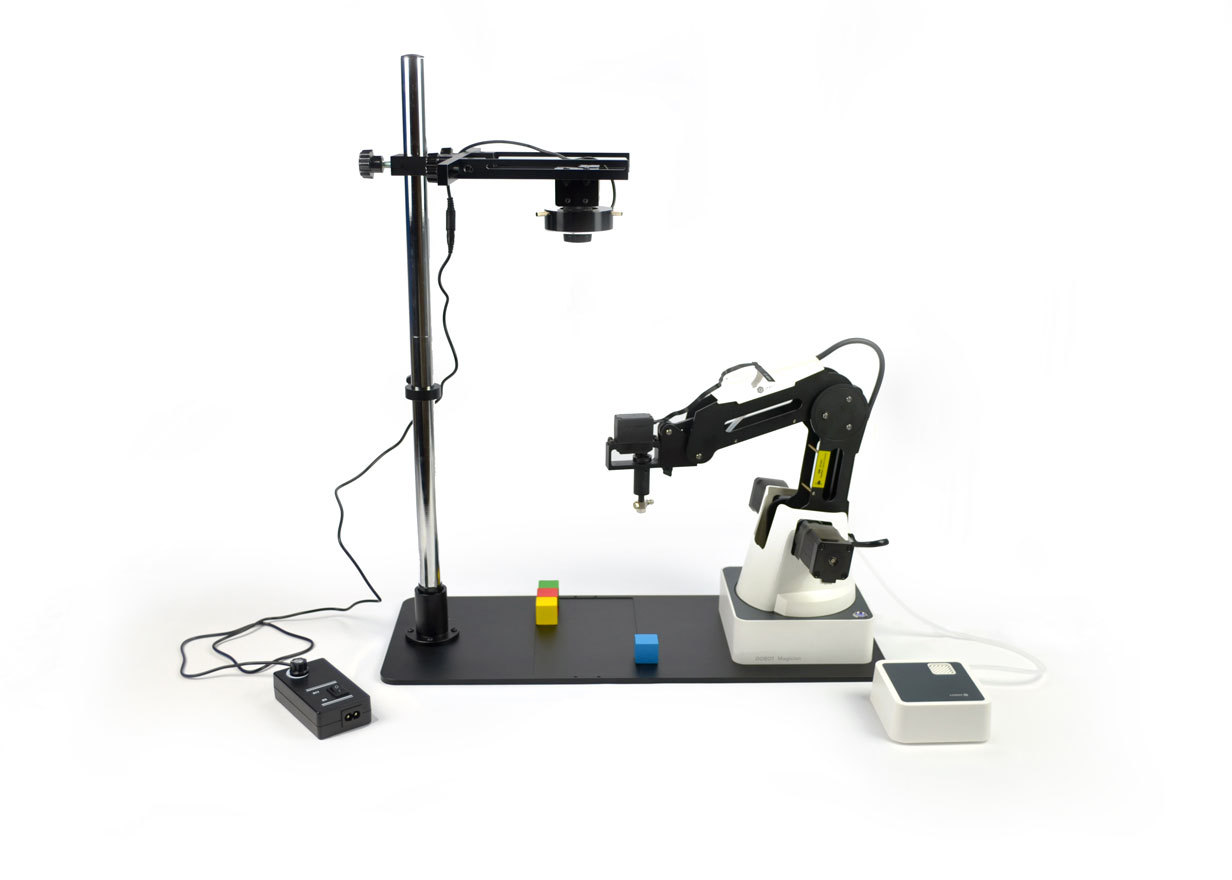 Дополнительный модуль технического зрения для роботизированного манипулятора DOBOT Magician представляет собой набор аппаратной платформы для разработки системы технического зрения. Данный модуль позволит учащимся познакомиться с основными принципами технического зрения роботов и интеграцией системы технического зрения в систему управления манипулятором. Также модуль позволяет проводить исследования по распознаванию образов, создавать алгоритмы искусственного интеллекта и разрабатывать промышленные приложения, основанные на техническом зрении.